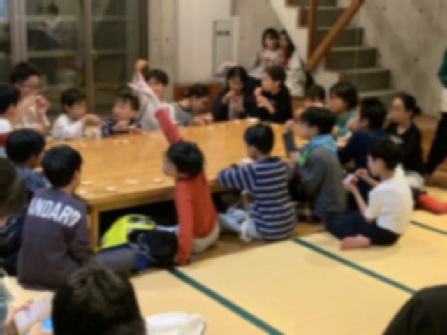 お風呂上がりに、ジェラードを食べました。友達と楽しい話をしながら、笑顔いっぱいで美味しくいただきました。