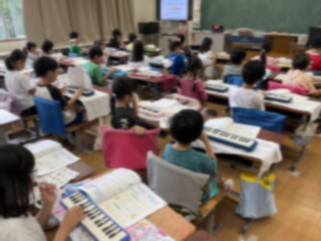 第2音楽室から鍵盤ハーモニカの音が聴こえてきました。2年生が一生懸命練習を重ねています。
