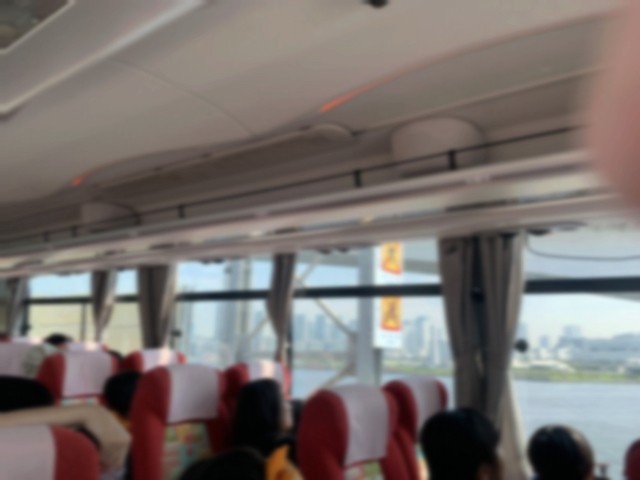 もうすぐ中央防波堤です。バスの中では、バスガイドさんから、車窓からの景色や建物などのたくさんの説明をしていただきました。
