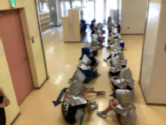 毎月、様々な状況を想定して避難訓練が行われます。いざというときに適切な行動をとることができるように訓練を積んでいます。訓練のときばかりではなく、放送や先生の指示をしっかりと聞くこと、廊下を走らないこと、並んだときにおしゃべりをしないこと、ハンカチを身につけておくことなど普段の生活でも習慣にするようにしています。今日は熱中症の危険も考えて廊下までの避難とし、避難経路などは各クラスで確認しました。