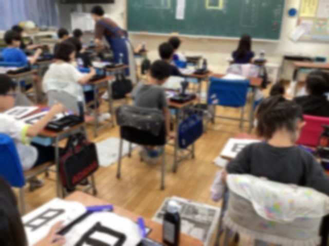 3年生から書写の時間に毛筆の学習があります。基本からしっかりと学習を積み重ねてきました。今日は毛筆で「おれ」の書き方の学習でした。折れの書き方を学び、筆使いに気をつけながら「日」を書きました。