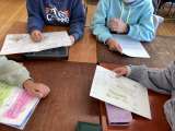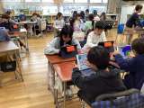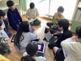 未来の仕事について、自分たちで考えた仕事内容を発表するための準備をしています。 ...
