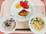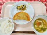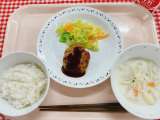 ★今日の給食★ ごはん 牛乳 とうふハンバーグ コールスローサラダ ポテトスープ...