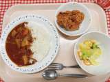 ★今日の給食★ カレーライス 牛乳 ☆リザーブトッピング (チキンカツ、えびフラ...