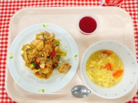 ★今日の給食★ごはん牛乳中華風たまご焼きチャーホウサイワンタンスープ