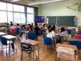 体育では、ワンバウンドキャッチボールを行いました。 息を合わせて、ボールを互いに...