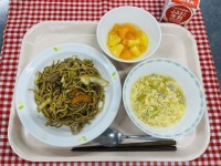 ★今日の給食★ソース焼きそば中華あんかけスープフルーツカクテル