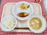 ★今日の給食★ごはん(有機米)鮭の照り焼き春雨サラダ豚汁
