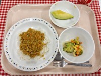 ★今日の給食★大豆入りドライカレーマカロニサラダメロン