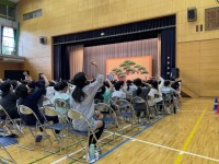 船橋小学校の体育館が、狂言の舞台になりました。万作の会と世田谷パブリックシアター...