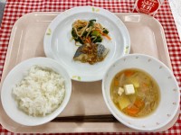 ★今日の給食★ごはんさわらの香味焼き油揚げのおひたし根菜汁