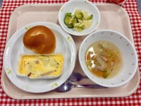★今日の給食★ミルクパンフレンチエッググリーンサラダトマトとレタスのスープ