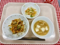★今日の給食★回鍋肉丼中華あえワンタンスープ