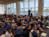 中央防波堤に到着しました。まずは、環境学習ホールで、ゴミのこと、地球環境について...