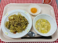 ★今日の給食★ソース焼きそば中華あんかけスープおかしな目玉焼き
