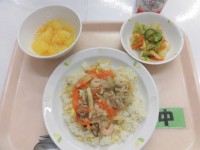 『今日の給食』 給食週間3日目 あんかけチャーハン 野菜の中華サラダ フルーツポ...
