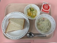 ジャムサンド クリームシチュー コーン入りフレンチサラダ 牛乳 ジャムは、いちご...