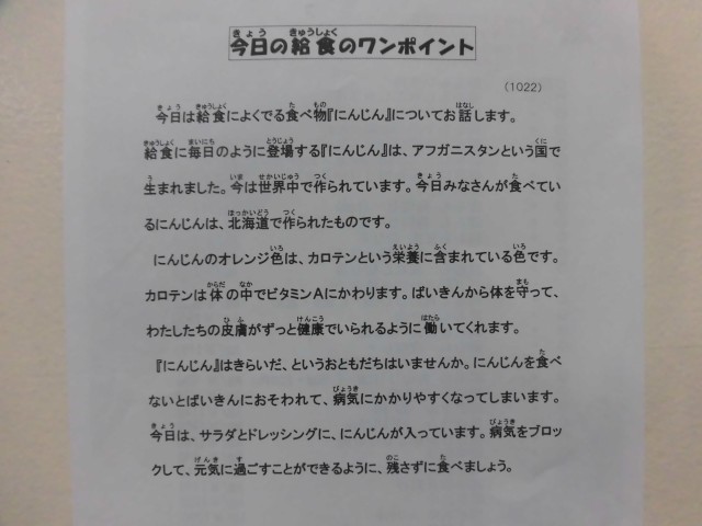 10月22日(水)の給食
