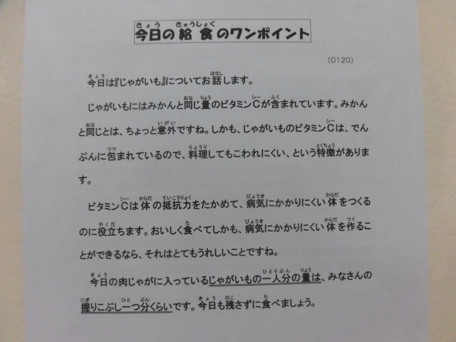 1月20日(火)の給食