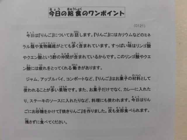 *本日、「焼きりんご」に使用したりんごは、長野県産のサンふじで、特別栽培されたものです。