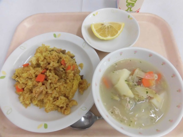 *「鶏肉とじゃがいものスープ」は材料調達の関係で、鶏肉を豚挽肉に変更いたしました。