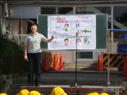 インフルエンザの流行で、区内で学年閉鎖の中学校が出ている状況下、今日の保健朝会では「手洗い・うがい・せきエチケット」について、平尾先生からお話ししていただきました。特に、手洗いについては「手洗い歌」に合わせて楽しく、ていねいに洗う方法を教えていただきました。給食のときに、DVDを流したので、覚えられたかな。お家でも、子どもたちに教えてもらってください。