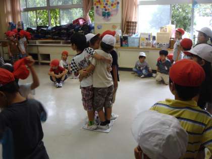 今回は、桜町小学校のみなさんが、クイズやゲームを考えてくれました。桜町小学校にちなんだ問題で、解答した深沢小学校の子どもたちは、自分の学校との違いに驚いていました。また、いっしょにドッジボールをして楽しいひと時を過ごしました。