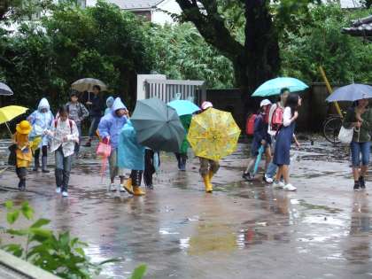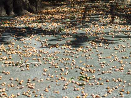 今日の朝は、台風18号の接近のため強い風と時折降る強い雨のため、子どもたちの登校は大変でした。フェアキャストで連絡を回しましたが、予想していたような展開にならず、ご家庭の皆さまには、たいへんご心配をおかけしました。あらためて、お詫びいたします。台風一過の校庭には、ぎんなんがどっさり落ちていました。青空がとてもさわやかでした。