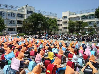 今日は国、東京都から大地震の警戒宣言が出たということを想定し、緊急メールで保護者に連絡する、ということも行いました。