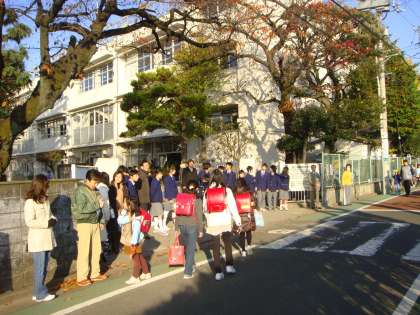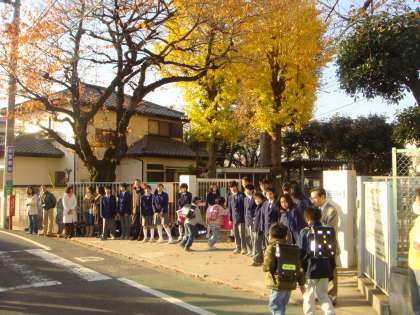 12月2日 ふれあい登校デーでした。素晴らしい天気で、イチョウが黄色く光っています。深沢中学校の1年2組の生徒の皆さんと深沢中学校の校長先生、本校のPTA 役員の皆さんが正門のところで気持ちのいいあいさつをしていました。寒くなると、ついあいさつの声も小さくなりがちです。明日からも、大きな声であいさつを交わし合えるようにしていきたいです。