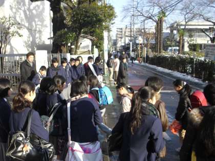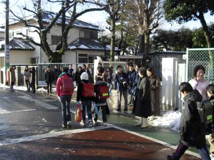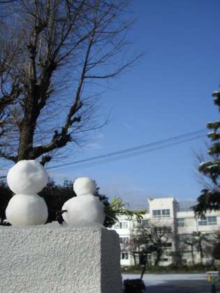 今日は「ふれあい登校デー」でもありました。深沢中学校の生徒の皆さんも、大雪の朝にも関わらず元気に姿を見せてくれました。PTAの方々、地域の方々、たくさんの方が来てくださり、深沢小学校の正門前は大にぎわいです。門の上のミニ雪だるまも、子どもたちを迎えていました。