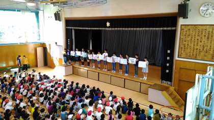 今週の木曜日の集会の時間は、後期の委員会の委員長から抱負やお願いなどが発表されました。