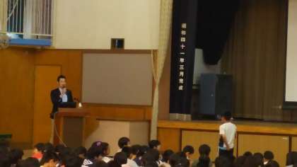 水泳との出会い、岐路にたった時の恩師の言葉など、子どもたちにわかりやすく話していただきました。