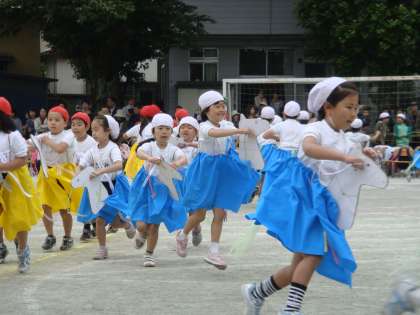 「荒馬」は、馬事公苑への遠足でみた、白い馬をイメージしました。ねぶた祭りのはねとのかけ声に合わせて、元気のよい若馬になって踊りました。