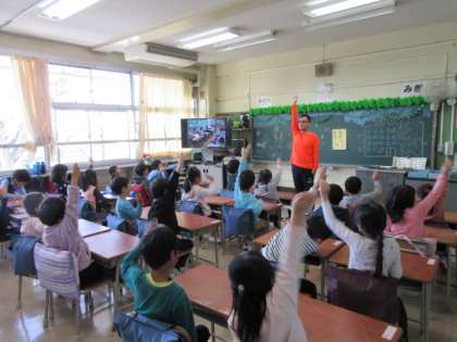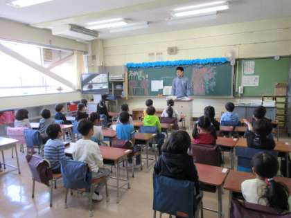 3組では話の聞き方や姿勢について、4組では手のあげ方や返事の仕方を学んでいました。