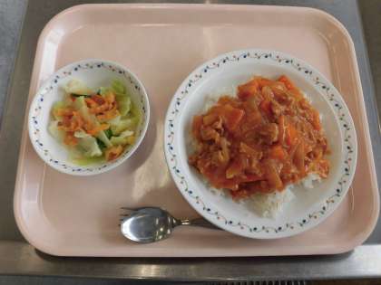 【献立】ハッシュドポークライス・パリパリサラダ・牛乳