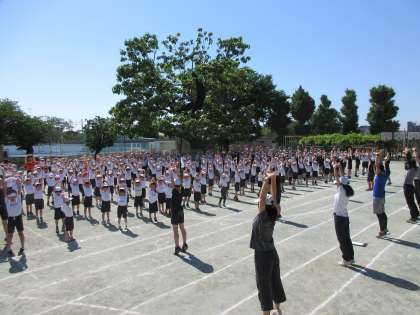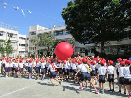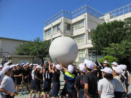 今日の全体練習では大玉送りをしました。練習ではありましたが子どもたちはとても盛り上がっていました。今日の練習では赤が勝ちましたが、本番ではどうでしょうか。