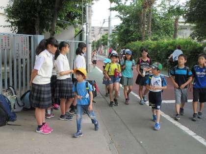 挨拶を励行し、挨拶を通じて人と人が交流するこの取組は学び舎で大切にしたい取組です。