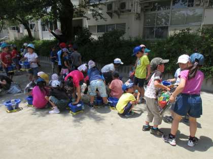 2年生が生活科の学習で自分の植木鉢に土を入れ、種を植えていました。2年生が育てるのは二十日大根です。これからは自分で水やりをし、育てていきます。