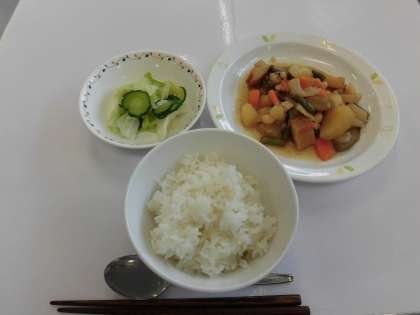 【献立】ごはん・豆入り筑前煮・野菜のひと塩・牛乳