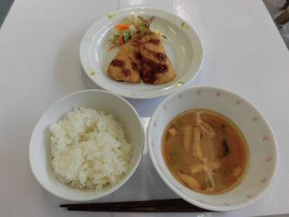【献立】ごはん・あじフライ・野菜の甘酢かけ・みそ汁・牛乳