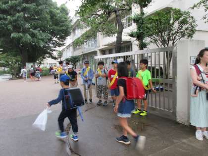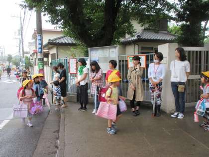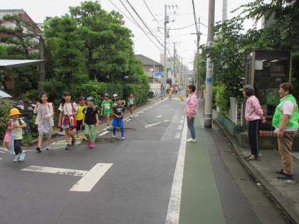 道路では駒沢町会と新町公民会、わんわんパトロールの皆様が子どもたちに声をかけてくださいました。玉川警察署の方も巡回をしてくださっていました。