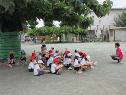 みんなでおに遊びをしたり、鉄棒にぶら下がったりしていました。赤白に分かれて長縄とびをしているクラスもありました。