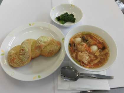 【献立】ケロケロあげパン・肉団子入り春雨スープ・スティックきゅうり・牛乳
