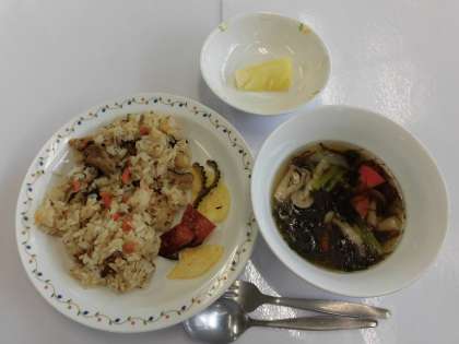 【献立】クファジューシ・夏野菜チップス・もずくスープ・パイン・牛乳