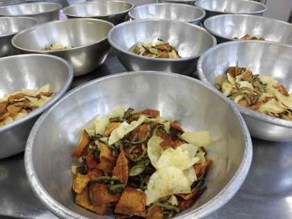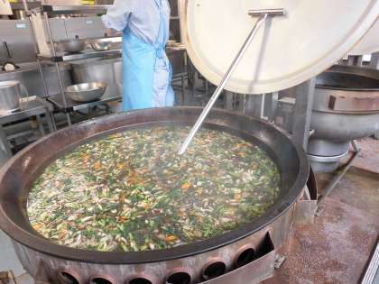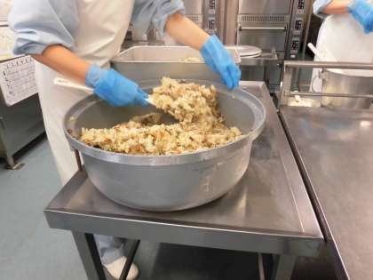 今日の給食は沖縄料理でした。給食室のようすをご紹介します。