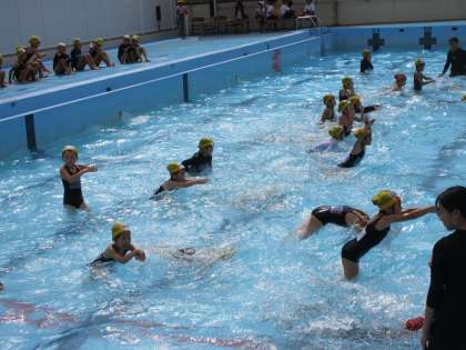 子どもたちは遊びながら水の中でできることが増えていきます。プールでの安全な学習の仕方も身に付いてきました。何よりも皆とても楽しそうでした。
