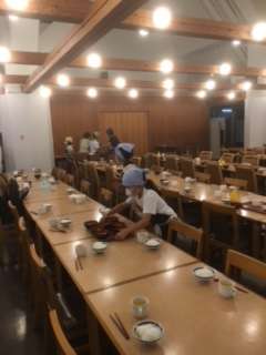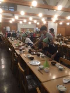食事係の子どもたちが夕食の準備をしています。まもなく夕食です。