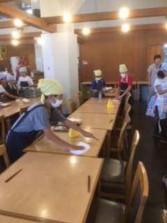 食事係の子どもたちは互いに声を掛け合い手際よく仕事ができるようになりました。