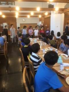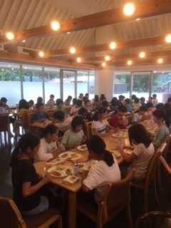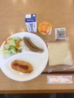 今日のメニューは洋食。おいしくいただきました。食事中に今日誕生日の友達に贈るハッピーバースデーの歌声が聞こえてきました。いい子どもたちです。